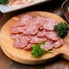 黒豚にローズマリーなどのスパイスを組み合わせて自社熟成庫で熟成させた生サラミです。